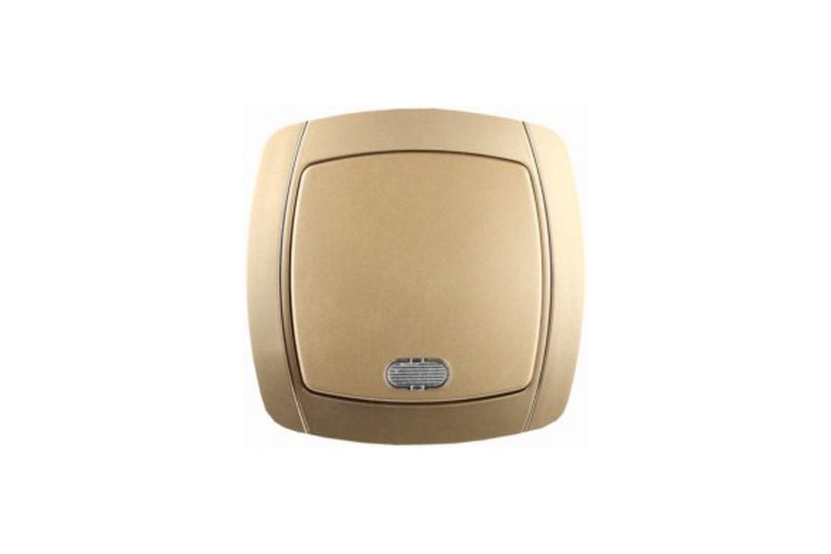 Выключатель одноклавишный в сборе, с подсветкой, цвет золотой металлик, 10А/~250В