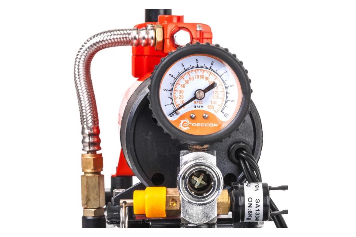 Аавтоматическое отключение после заполнения ресивера или достижения нужного давления в шинах и двухшкальный манометр на рукоятке. 10-метровый шланг сделан из полиуретана. Поршень насоса оснащен уплотнительным кольцом из гибкого жаропрочного тефлона.