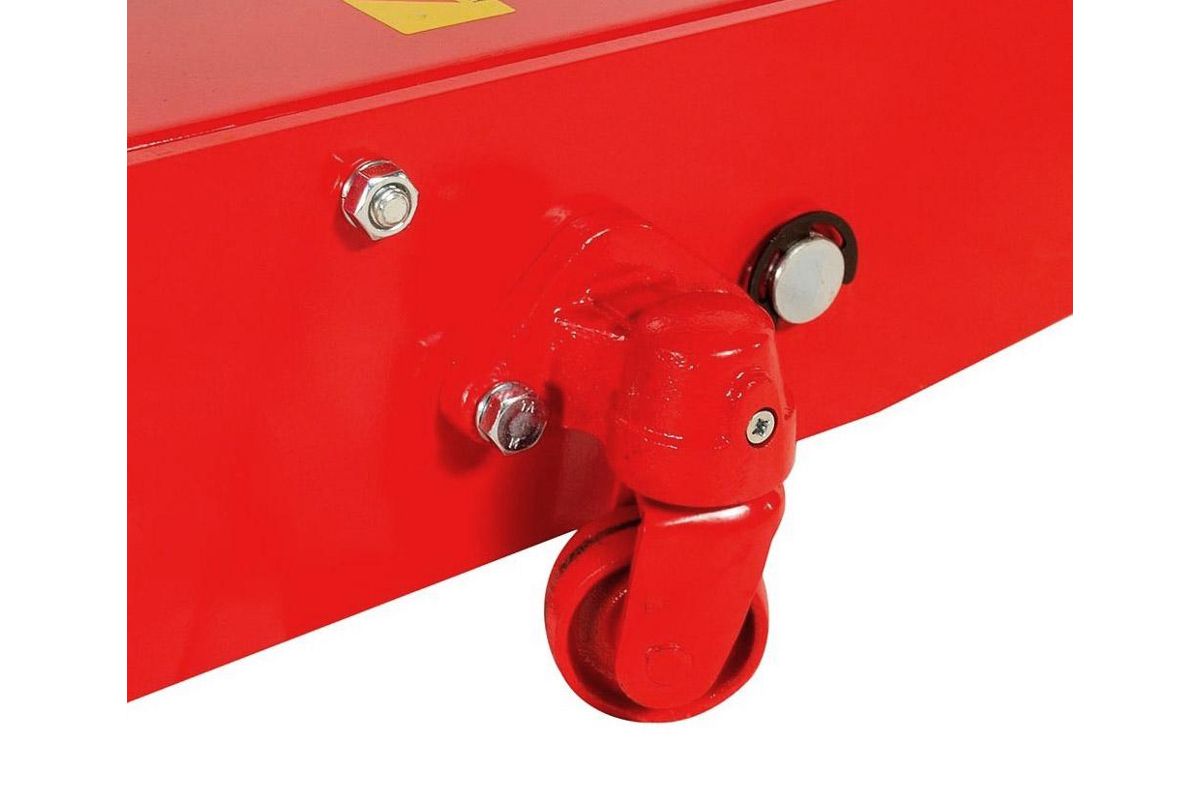 Большегрузные усиленные поворотные колеса обеспечивают маневренность домкрата.