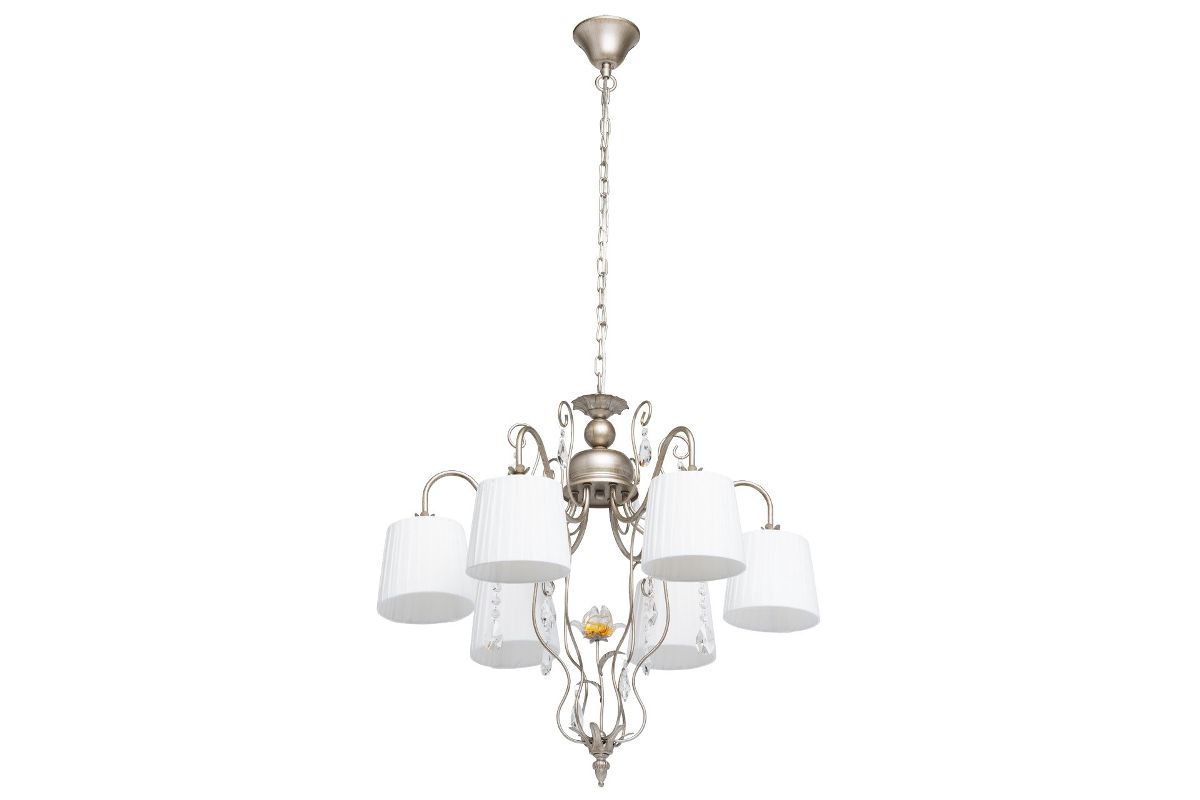 Цвет плафона: текстильные абажуры белого цвета, декоративные элементы из стекла и хрусталя