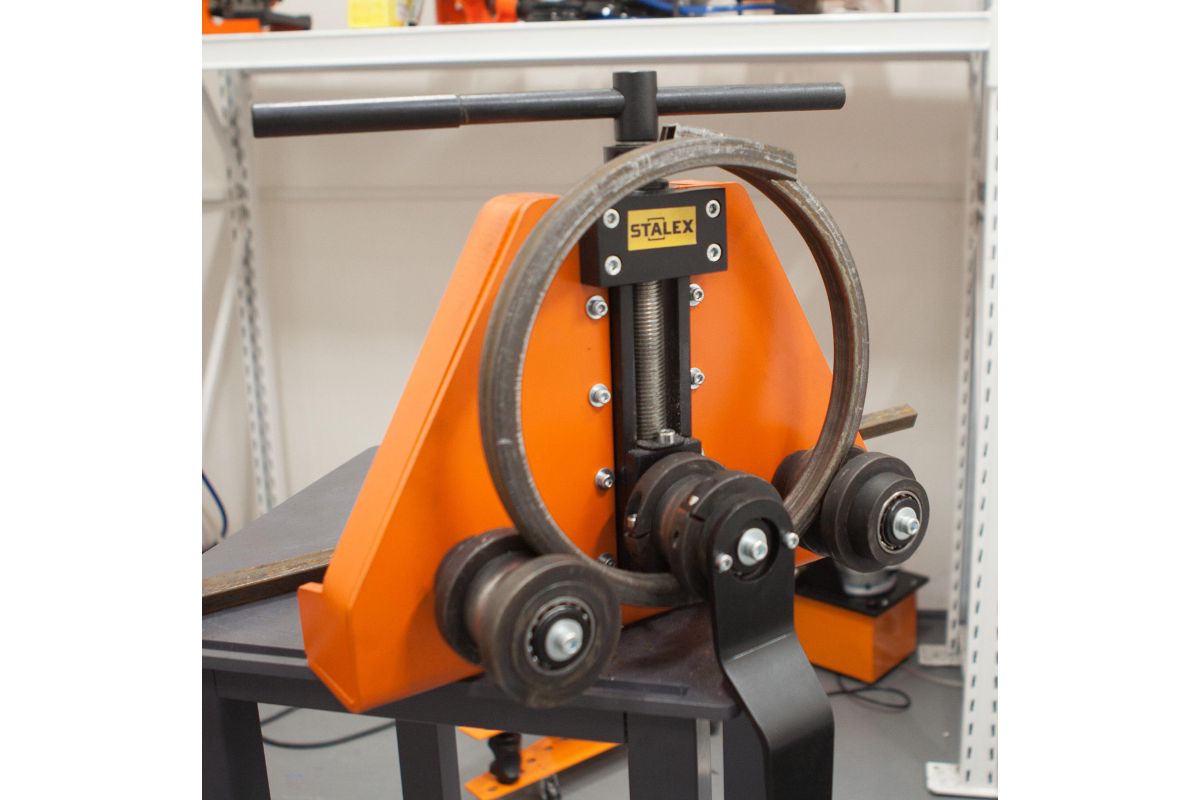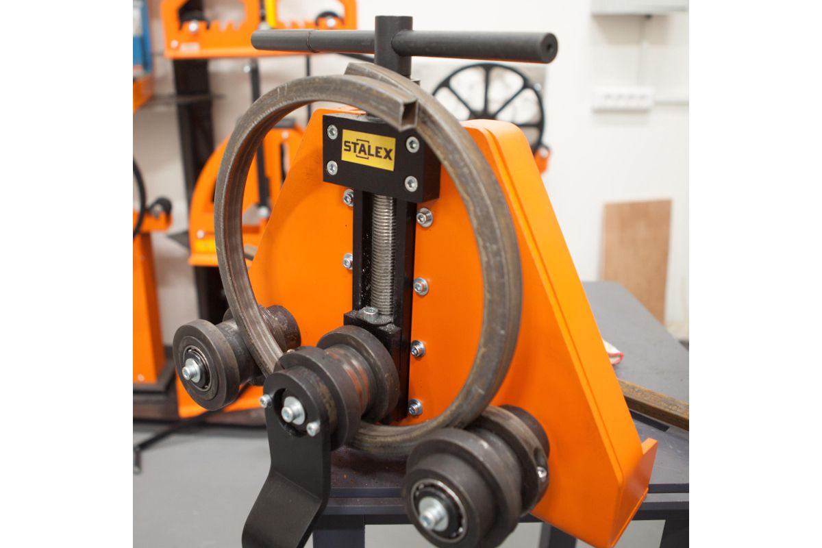 заготовкой «колесо» или «круг». Рабочие ролики легко выдвигаются с валов для съёма получаемой заготовки. Предназначен для гибки труб профильного и круглого сечения из металла или другого материала по заданному радиусу, методом прокатки.