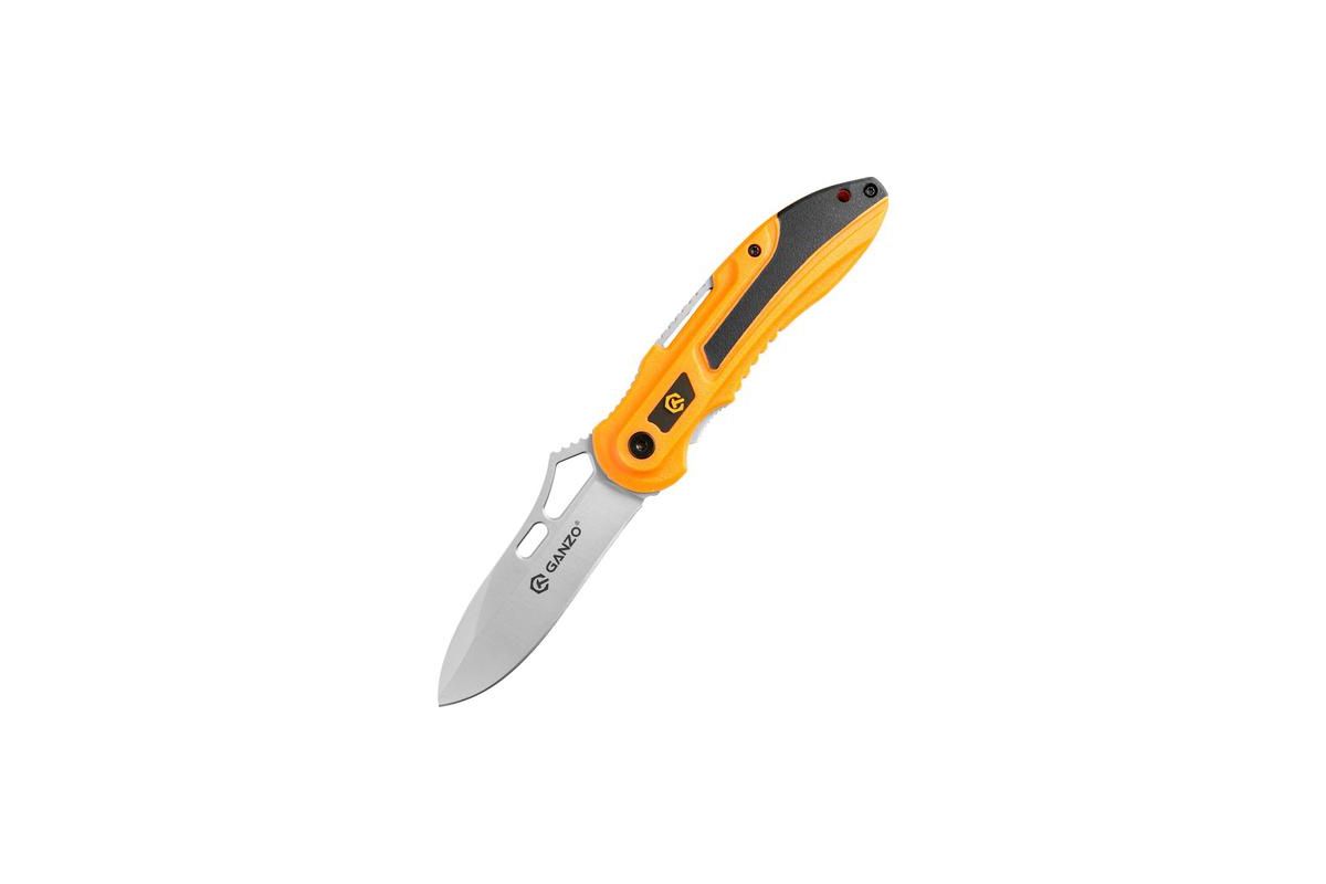 Складной нож Ganzo G621 представляет собою компактную модель, удобную для использования во время активного отдыха на природе. Ручка ножа изготовлена из пластика ABS. Благодаря яркой расцветке, упавший нож легко отыскать в траве или в камнях. Лезвие с прямой заточкой сделано из нержавеющей стали марки 4116. Производители заявляют о твердости клинка 55 HRC, что является достаточно хорошим рабочим показателем. Длина клинка составляет 8 см, толщина — 0,3 см. У основания внешнего края клинка находятся два отверстия, взявшись за которые, нож легко открыть.