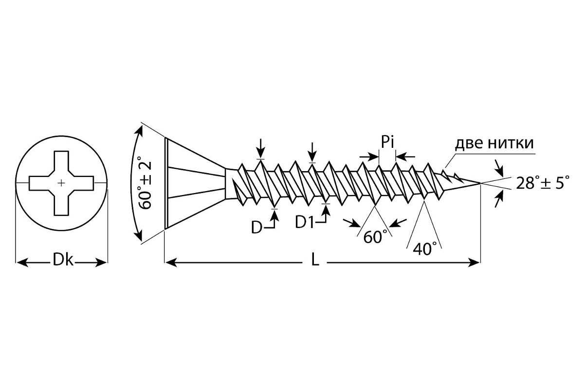 - Тип шлица: PH;