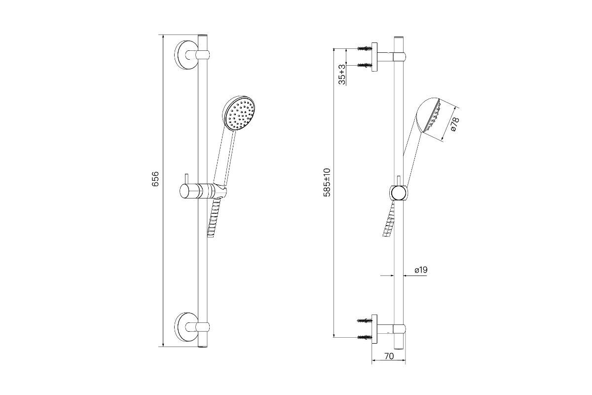 Душевой гарнитур Niagara, благодаря естественной плавности линий, легко впишется в интерьер любой современной ванной комнаты. Однорежимная ручная лейка проста и удобна в каждодневном использовании благодаря оптимальному диаметру (78 мм). Поворотный держатель позволяет удобно регулировать угол наклона лейки. Стойка гарнитура изготовлена из нержавеющей стали с никель-хромовым покрытием и имеет свободные крепления, что позволяет закрепить ее на уже имеющихся отверстиях в стене или выбрать подходящую точку крепежа. Крепления входят в комплект.