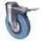Колесо с поворотным кронштейном под болт с тормозом на серой резине, которая не оставляет следов на напольном покрытии. Высокая механическая прочность достигнута путем нанесения цинкового слоя на сталь, из которой изготовлен обод и кронштейн. Цинк улучшает стойкость листа к механическим нагрузкам и абразивному износу. Обод закрыт стальными дисками, которые препятствуют проникновению внутрь колеса влаги и различных загрязнителей. В оси колеса установлен подшипник скольжения. Не боится ударных нагрузок и не требует ухода. В поворотном узле установлен двухрядный шариковый подшипник, отвечающий за маневренность в движении.