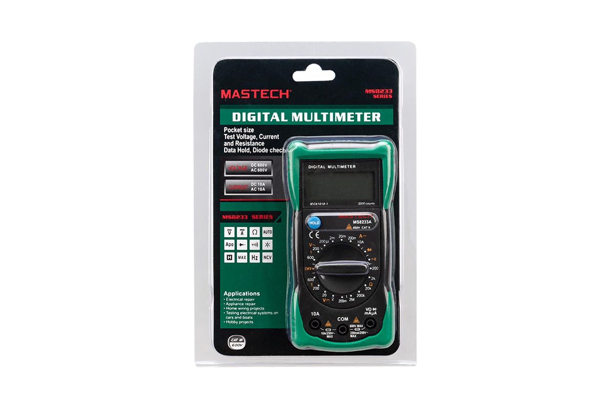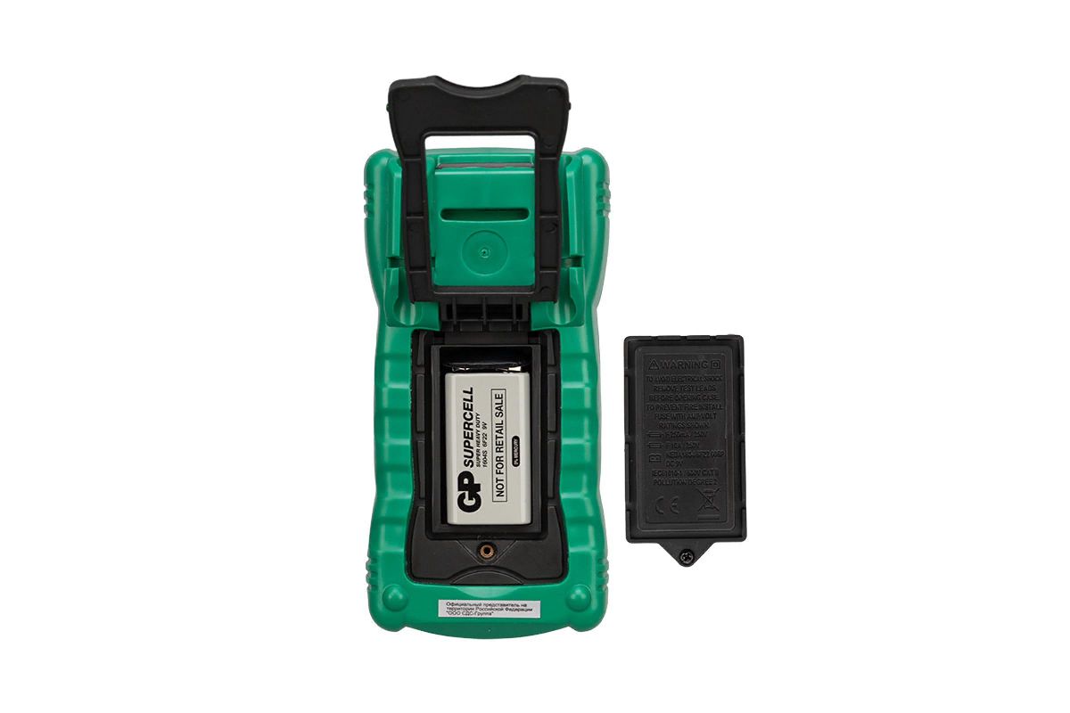 Универсальный мультиметр предназначен для измерения постоянного и переменного напряжение, а также постоянного тока и сопротивления в цепи. Также можно проводить тестирование диодов и осуществлять прозвонку целостности цепи, что делает инструмент универсальным. Имеет интуитивно понятную панель управления, что облегчает использование прибора. Функция удержания результата измерений DATA HOLD помогает, когда нет возможности взглянуть на экран.