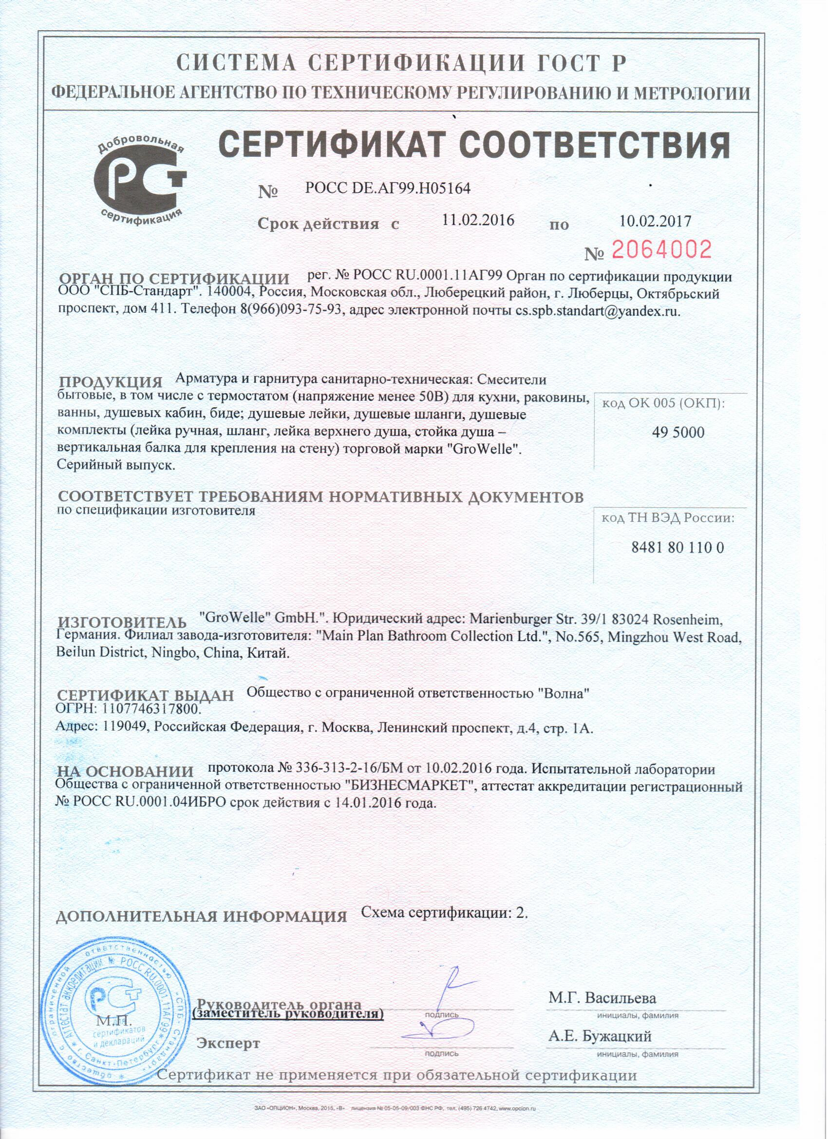 Есть в наличии подходящий картридж для Смесителя для раковины Gro Welle "Muskat". MSK711?